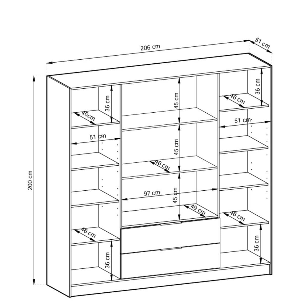 10 zamkniętych półek – idealnych na ubrania, buty lub tekstylia.