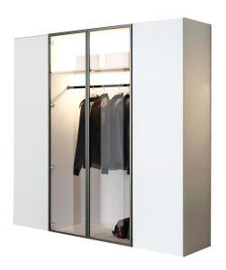Szafa czterodrzwiowa z przeszklonym frontem i LED biała STELLO