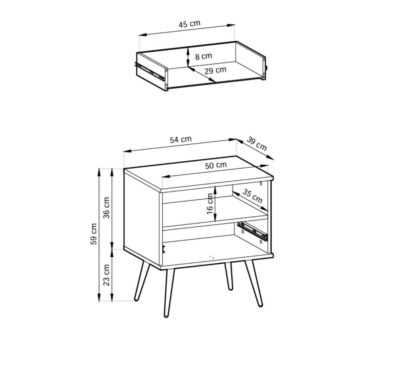 Solidne wykonanie z wysokiej jakości materiałów gwarantuje trwałość i stabilność, a wykończenie z dbałością o detale zapewnia elegancki wygląd przez lata. Kompaktowe wymiary stolika nocnego sprawiają, że zmieści się nawet w niewielkich sypialniach czy pokojach gościnnych, stając się praktycznym i dekoracyjnym elementem wnętrza. To idealny wybór dla osób, które cenią połączenie estetyki, funkcjonalności i oryginalnego wzornictwa w jednym meblu.