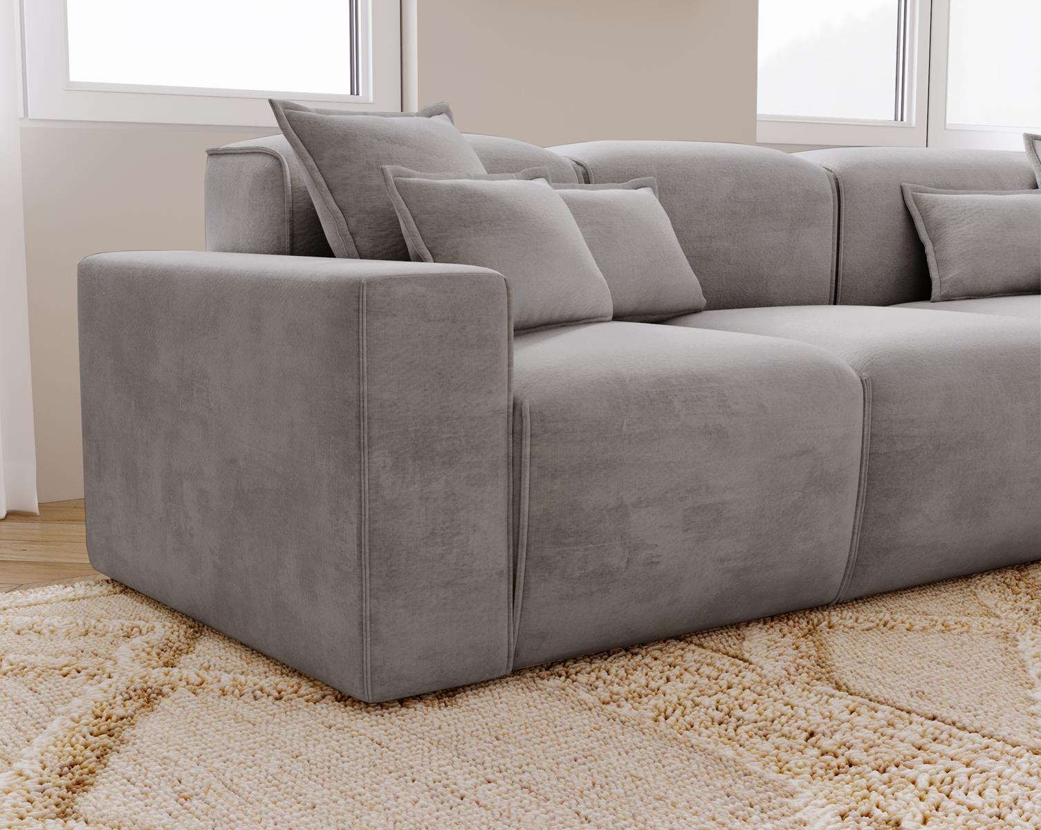 Narożnik AURIA w odcieniu szarości to doskonałe połączenie elegancji, funkcjonalności i wygody. Uniwersalny szary kolor świetnie wpisuje się w różnorodne aranżacje wnętrz - od nowoczesnych, przez skandynawskie, aż po klasyczne - tworząc spójną i przytulną przestrzeń. Szarość nadaje wnętrzu równowagi, a jednocześnie stanowi idealne tło dla dodatków w różnych kolorach, pozwalając na łatwe dopasowanie wystroju do własnych preferencji.