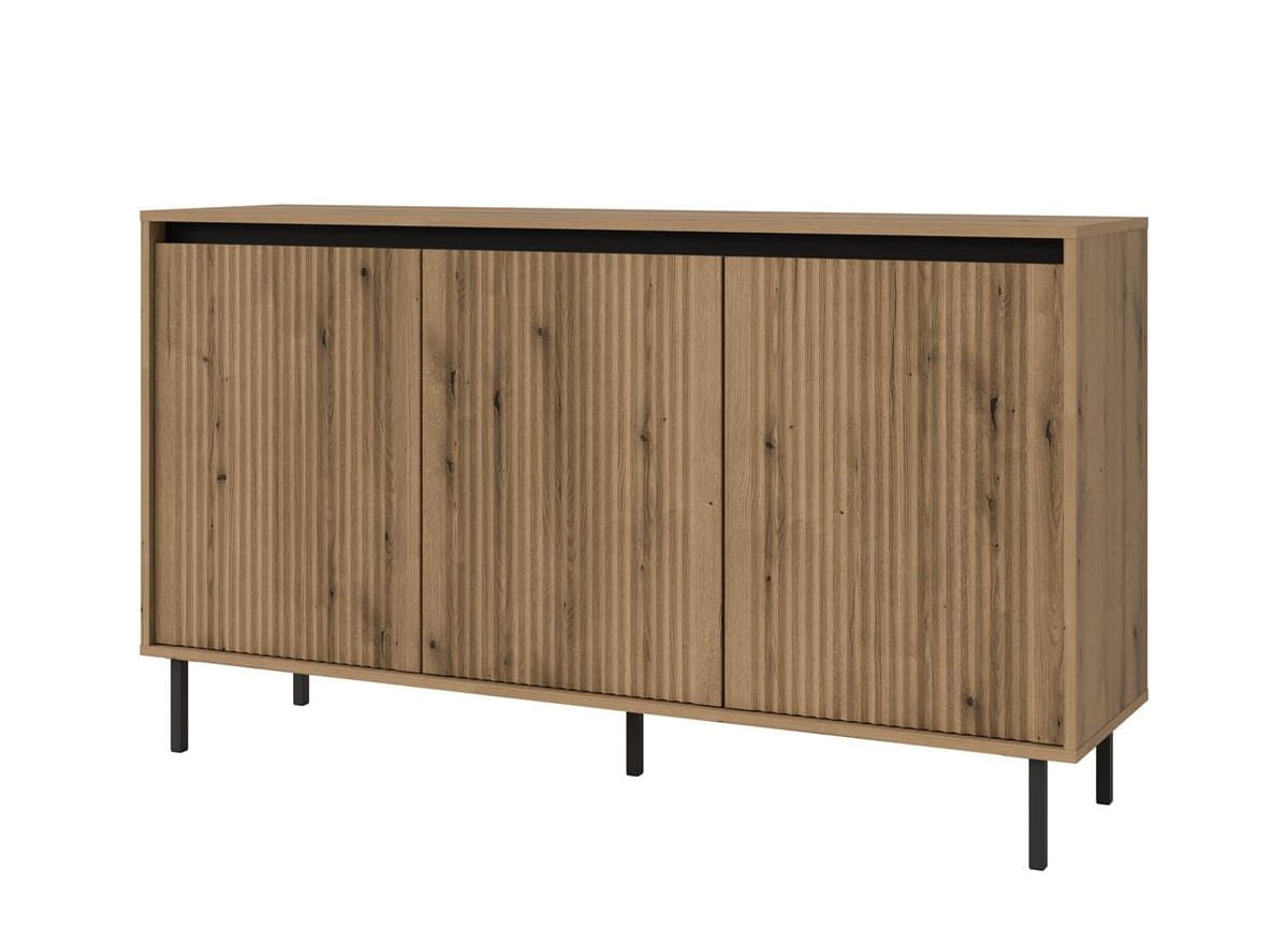 Komoda trzydrzwiowa dąb Evoke z ryflowanymi frontami to idealny wybór dla osób ceniących nowoczesny, naturalny design oraz praktyczne rozwiązania do przechowywania. Doskonale dopełnia aranżacje w duchu japandi, wprowadzając do wnętrza harmonię, elegancję i funkcjonalność.
