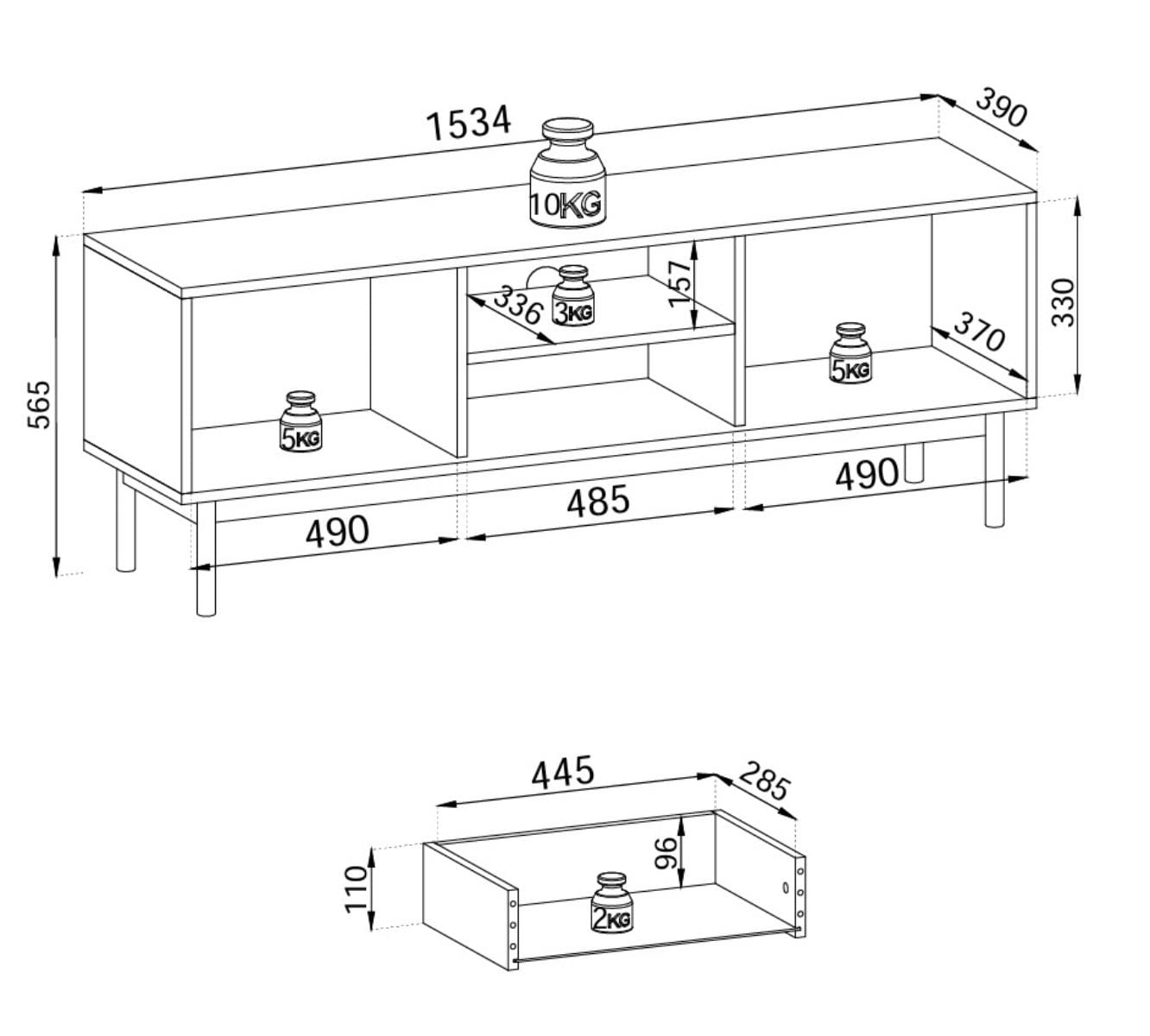 Szeroka szafka RTV z szufladą skandynawska STELLA