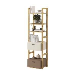 Wąski regał beżowy z drewnianymi elementami dąb artisan do pokoju młodzieżowego LAGOS