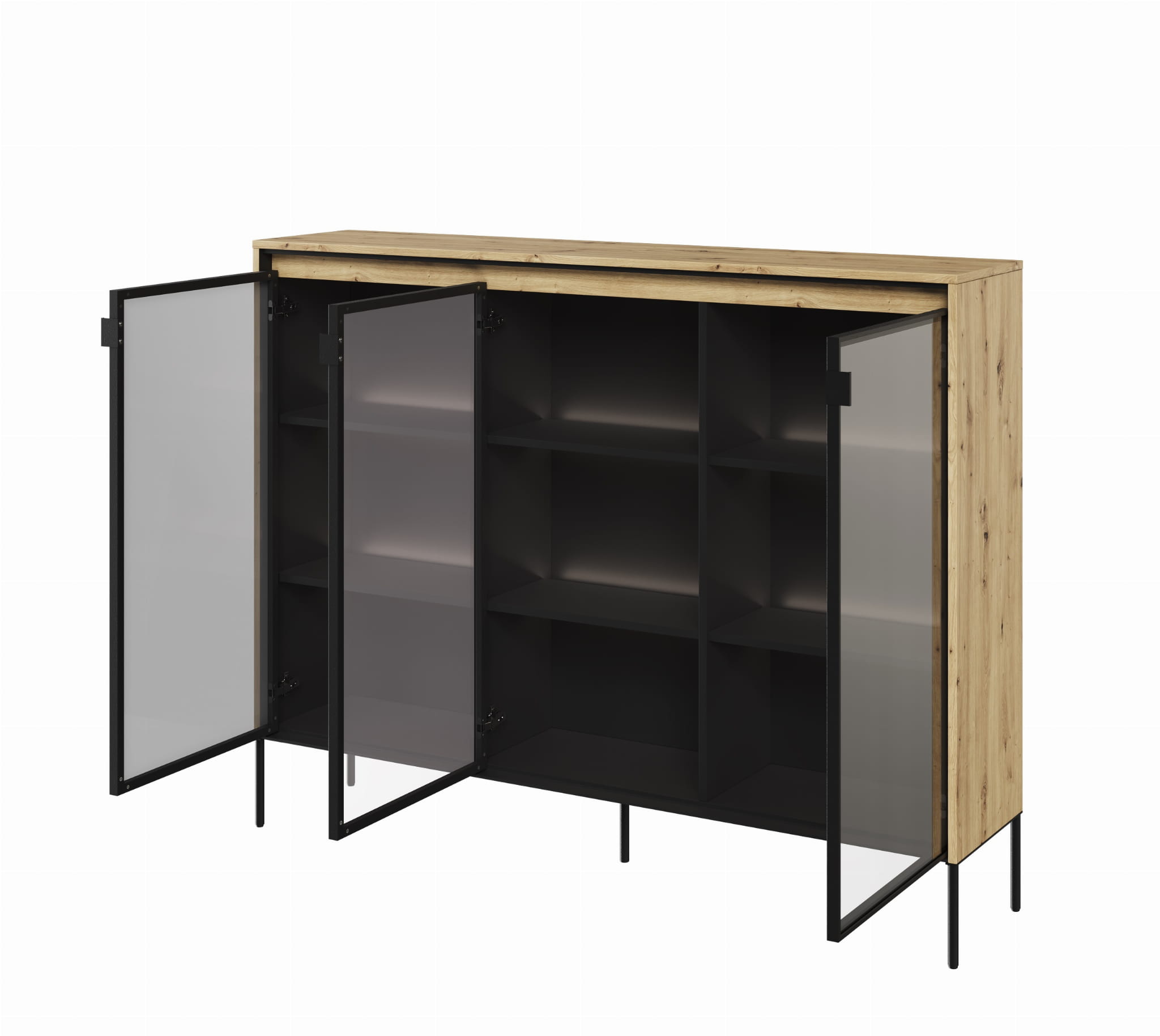 Mebel został zaprojektowany z myślą o praktycznym przechowywaniu - półki zapewniają dużą pojemność magazynową, a solidna konstrukcja sprawia, że witryna posłuży przez lata. Idealnie sprawdzi się zarówno w salonie, jak i w jadalni czy gabinecie, stając się nie tylko miejscem do przechowywania, ale także stylową ozdobą wnętrza.