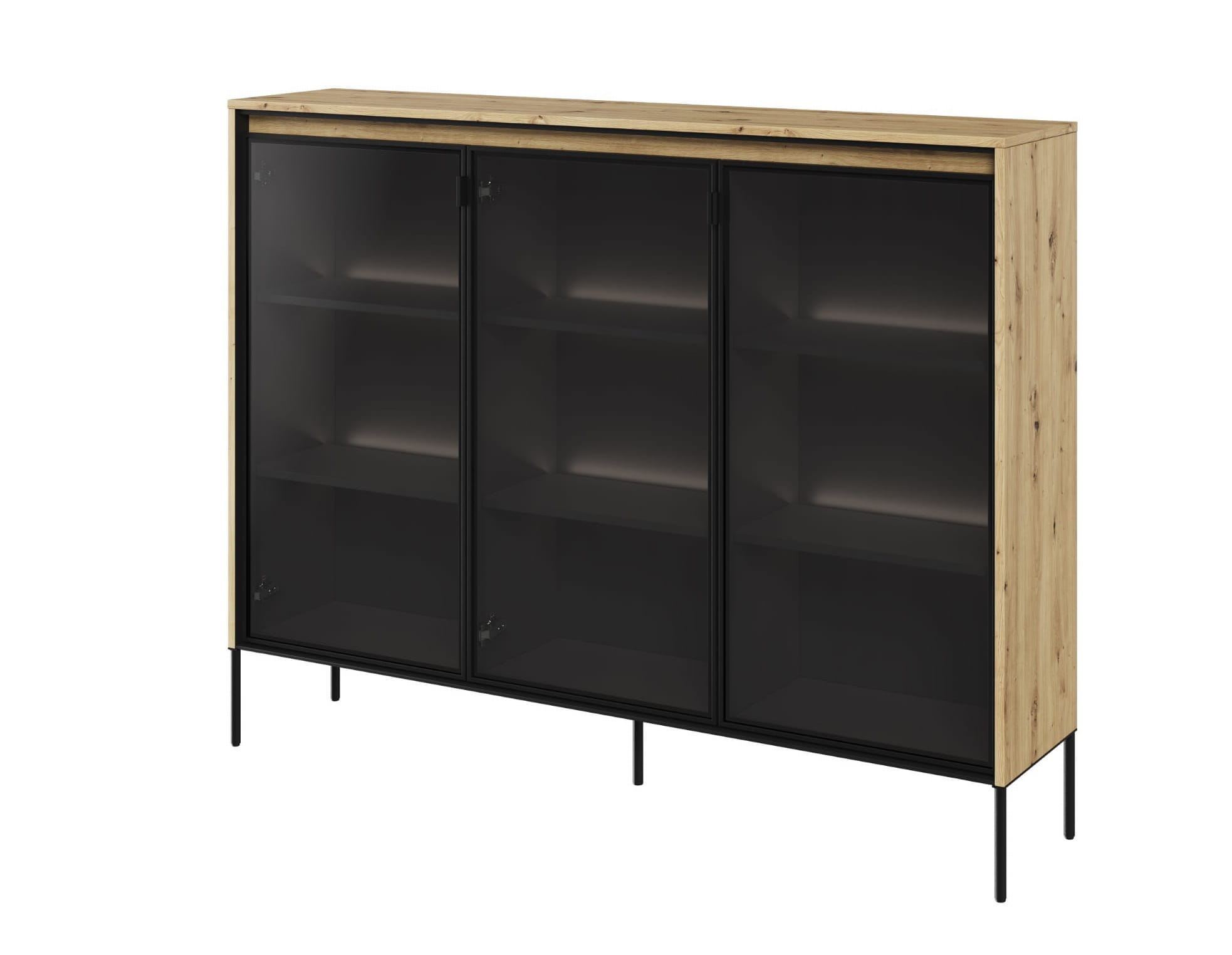 Nowoczesna witryna do salonu w kolorze dąb artisan to połączenie elegancji i funkcjonalności, które doskonale wpisuje się w aranżacje wnętrz w stylu modern, industrialnym, loftowym czy rustykalnym. Jej smukła forma i ryflowane akcenty podkreślają nowoczesny charakter, a wysokiej jakości płyta laminowana gwarantuje trwałość i odporność na codzienne użytkowanie.