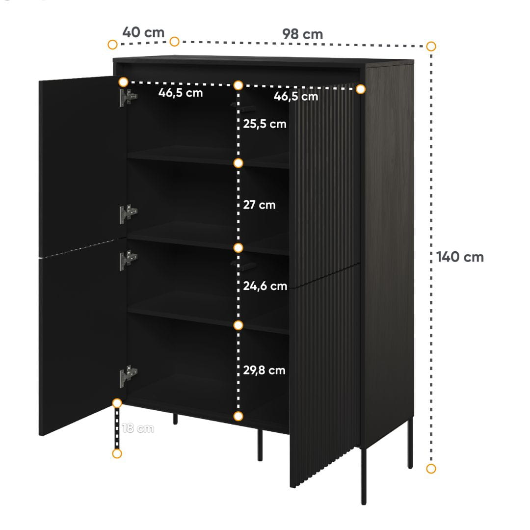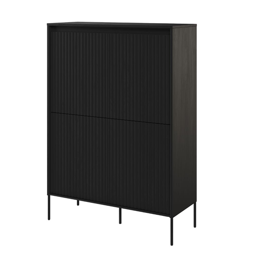 Czarna wysoka komoda ryflowana do salonu lub sypialni