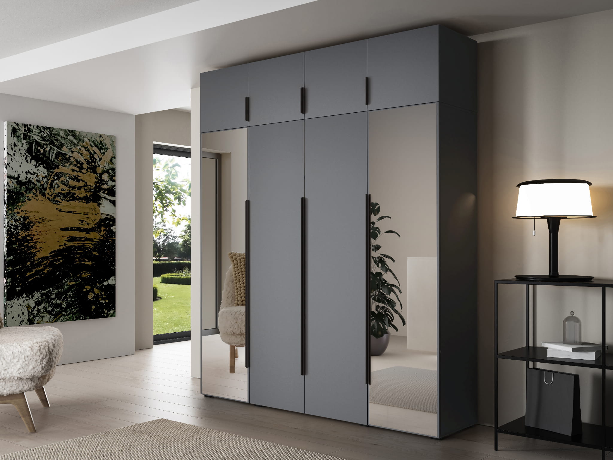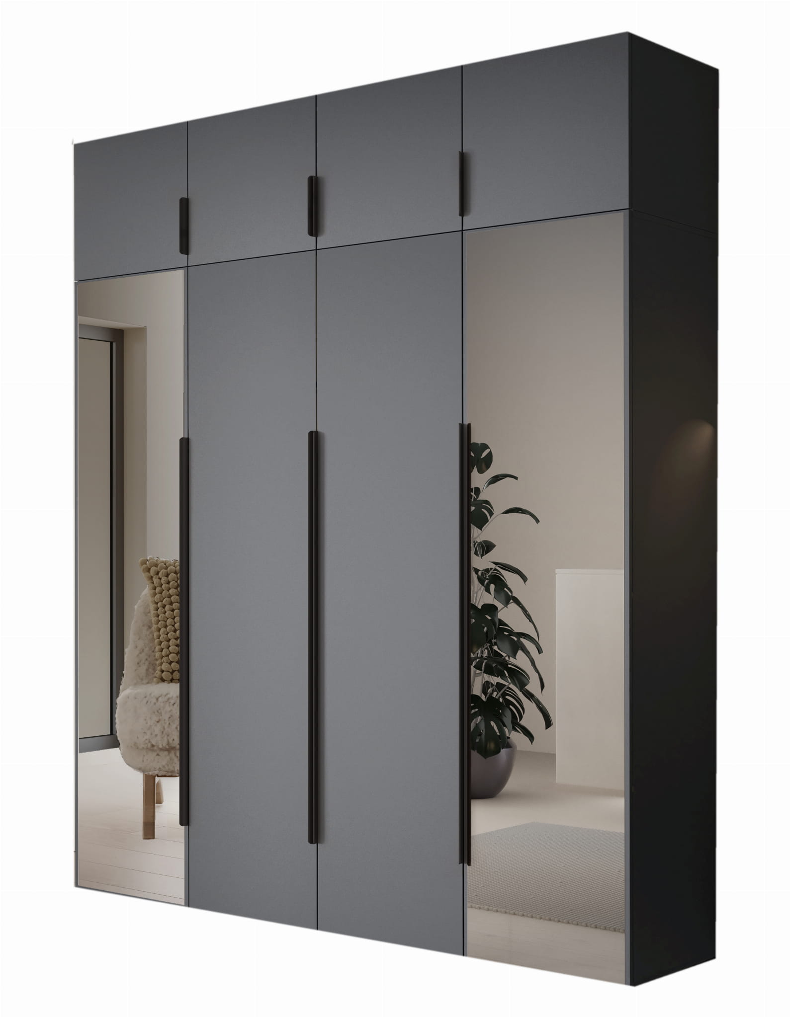 Wysoka szafa z lustrem grafitowa 4-drzwiowa z nadstawką STELLO